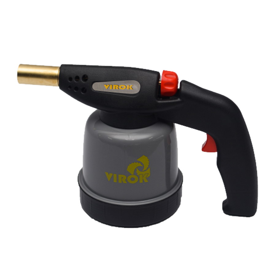 Лампа паяльна газова VIROK з п'єзозапалом під балон 190 г – нагрівальний прилад, в процесі роботи якого виділяється теплота за рахунок горіння рідких або газоподібних горючих речовин.