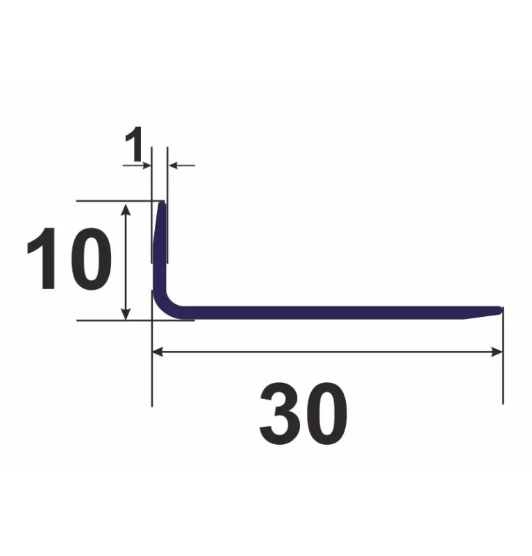 Алюминиевый разносторонний уголок 30мм х 10мм с толщиной стенки 1мм, изготовленный из высококачественного сырья, сплав алюминия АД 31. Алюминиевый профиль прошел термическую обработку Т5.