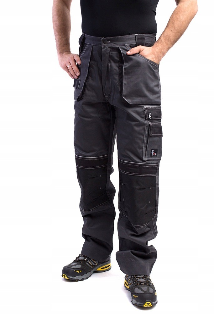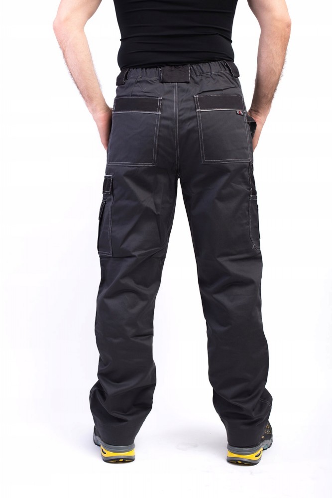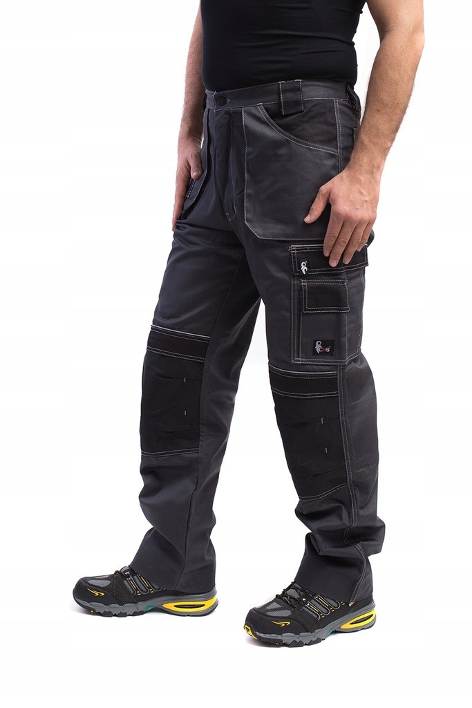 Колени в рабочих брюках усиленные полиэстером с плотностью 600 D и имеют место для защитных вкладов.